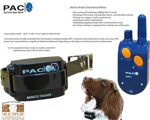 Henry JacobSome while ago we gave home to a year-old Rescue Dog of unknown provenance. We soon found we could not contain him in our grounds. This was a nightmare, especially since we had grazing sheep close by. On receiving complaints, we sought advice and we decided to try PAC's remote training collar. This was very effective. We do not find it cruel. Our dog is no longer deaf to commands and now enjoys his freedom.